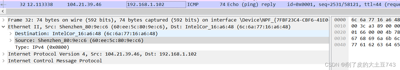 返回帧的源 MAC 地址:(60:ee:5c:80:9e:c6)