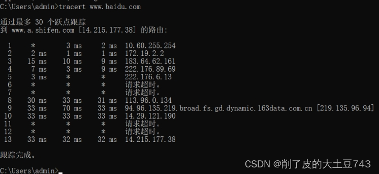 在以上两个实作中,如果你留意路径中的节点,你会发现无论是访问百度还是棋歌教学网,路径中的第一跳都是相同的,甚至你应该发现似乎前几个节点都是相同的,你的解释是什么?