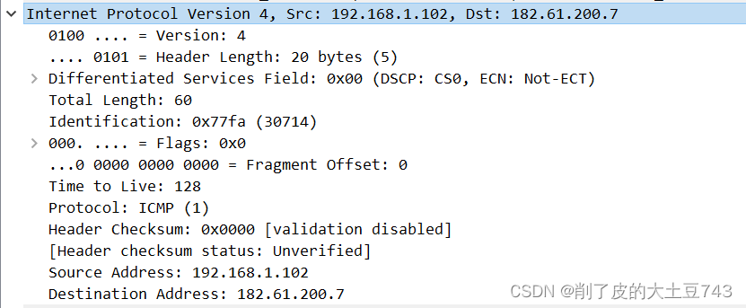 使用 Wireshark 任意进行抓包(可用 ip 过滤),熟悉 IP 包的结构,如:版本、头部长度、总长度、TTL、协议类型等字段。