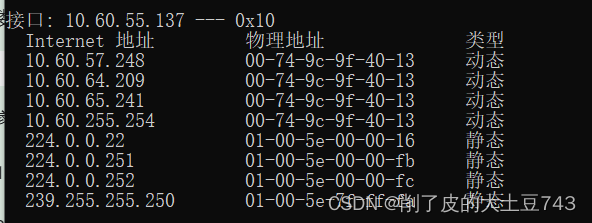 然后 ping 一下你旁边的计算机 IP(注意,需保证该计算机的 IP 没有出现在 arp 缓存中,或者使用 arp -d * 先删除全部缓存),再次查看缓存,你会发现一些改变,请作出解释。