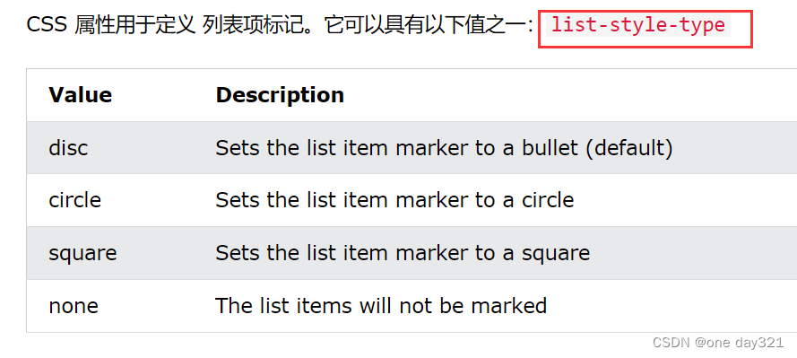 它的值有四个:disc(就是一个黑点)、circle(圆圈)、square(正方形)、none(无)。