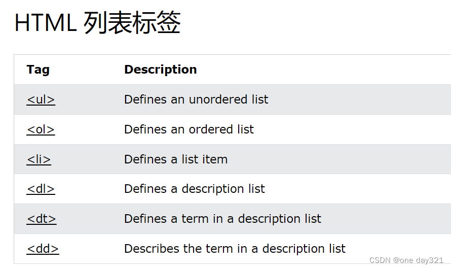 第三个:其它标签。<dl> 、<dt>、 <dd>