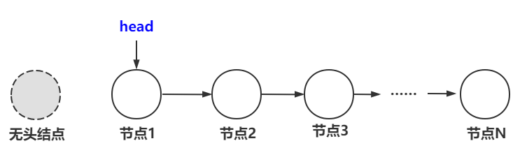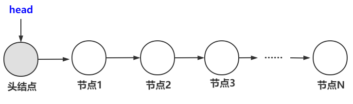头结点:是不存储有效数据的,只存储第一个数据元素的地址,头指针只指向头结点。