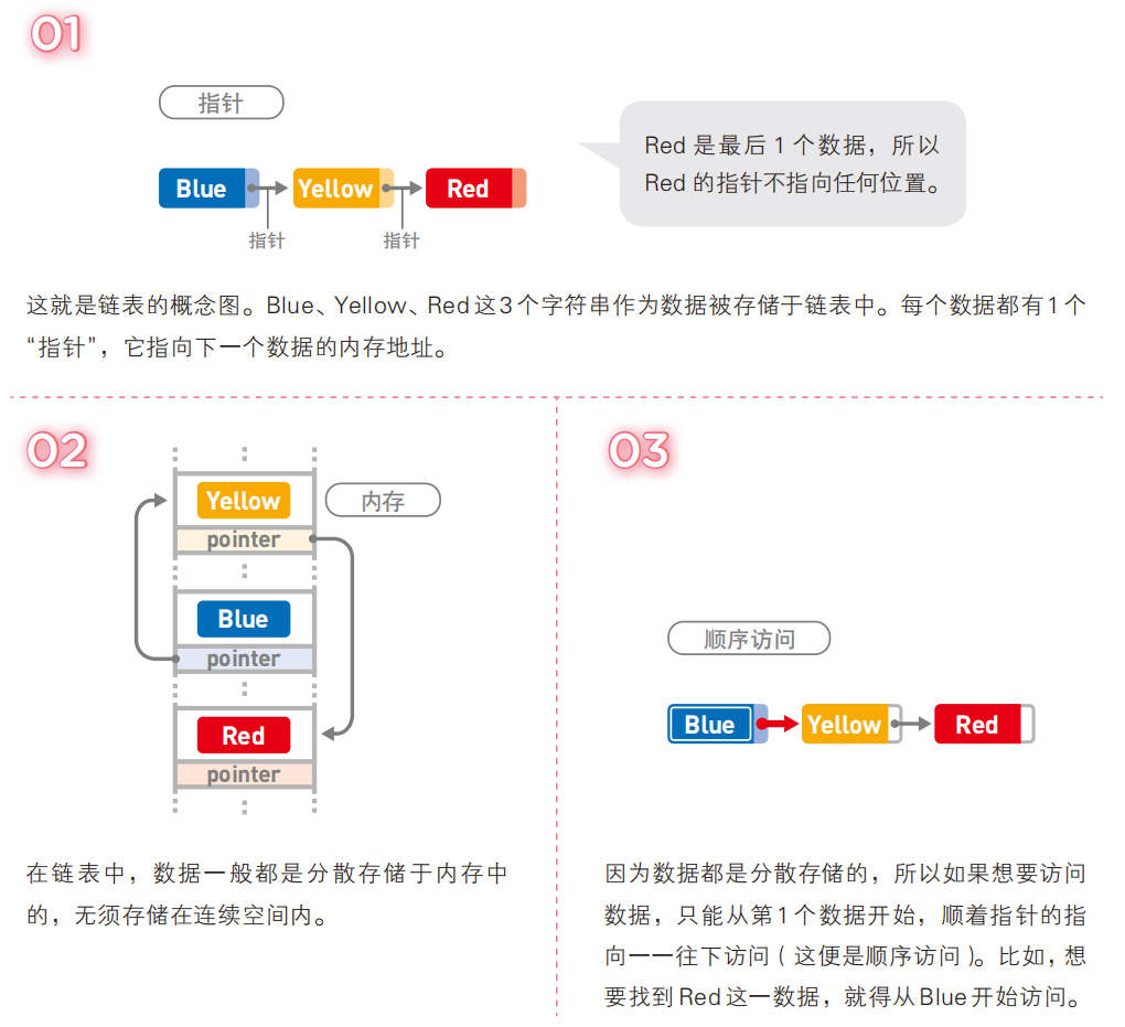 可以看到,顺序表和链式表的区别:顺序表使用连续的内存,链式表使用离散的内存空间。