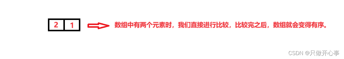 大家先想象一下这样一种场景,如果现在有两个数,我们要将这两个数排成升序,怎样呢?很简单,我们只需要将两个数进行一次大小的比较即可,比较完之后,小的元素放在前面,大的元素放在后面,其实这就是很简单的一次归并排序,两个素比较之后交换使得两个元素变得有序的场景我们就称作一次归并。