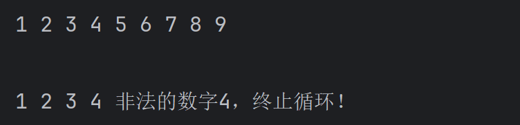 通过运行结果不难看出,continue 语句是直接终止当前循环,直接进入下次循环;而 break 是直接终止当前循环和后续的所有循环。