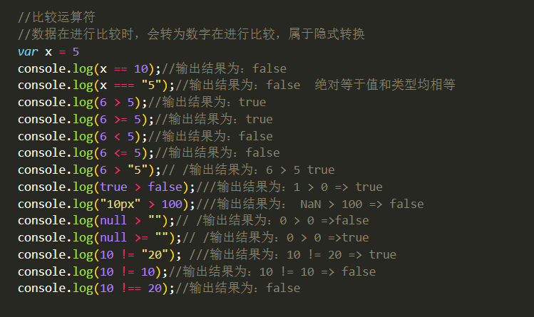比较运算符:在逻辑语句中使用,以测定变量或值是否相等或者大于小于。