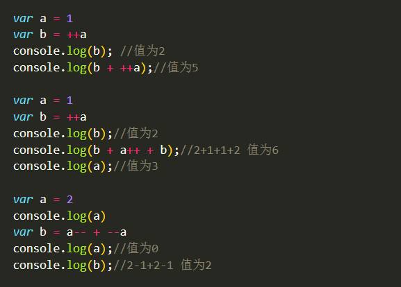 递增:前置递增(++a)和后置递增(a++),前置先自身加1然后再参与运算
