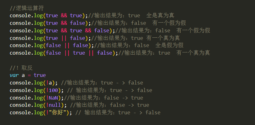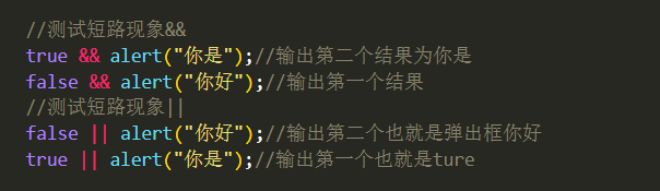 注意:短路现象,在||中如果第一个值为ture则输出结果为第一个,反之为false则输出结果为第二个。在&&中如果第一个值为ture则输出结果为第二个,反之为false则输出结果为第一个。