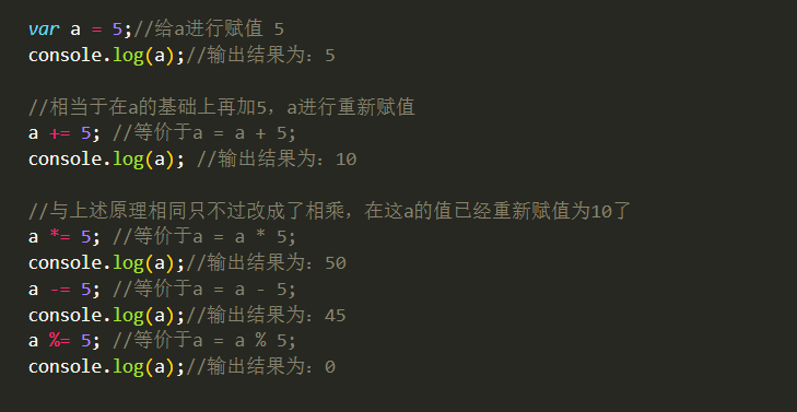 赋值运算符:用于给 JavaScript 变量进行赋值。