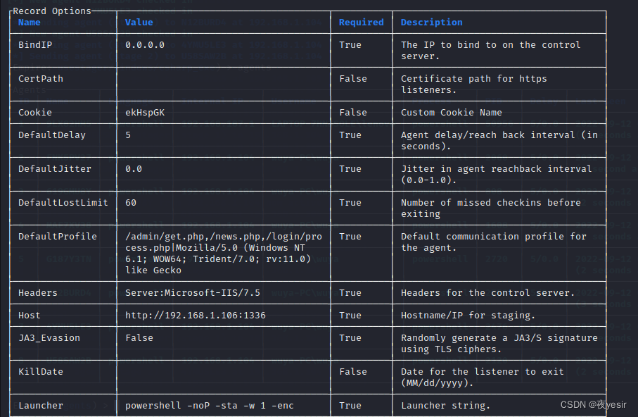 list Lists active agents or listeners. 列出活动代理或侦听器