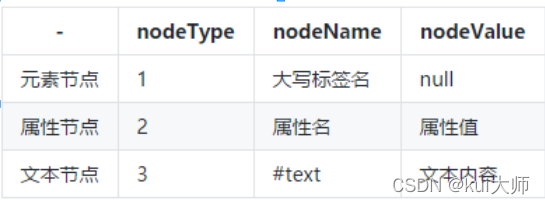 一般节点至少拥有nodeType(节点类型) nodeName(节点名称)noneValue(节点值) dir可查看