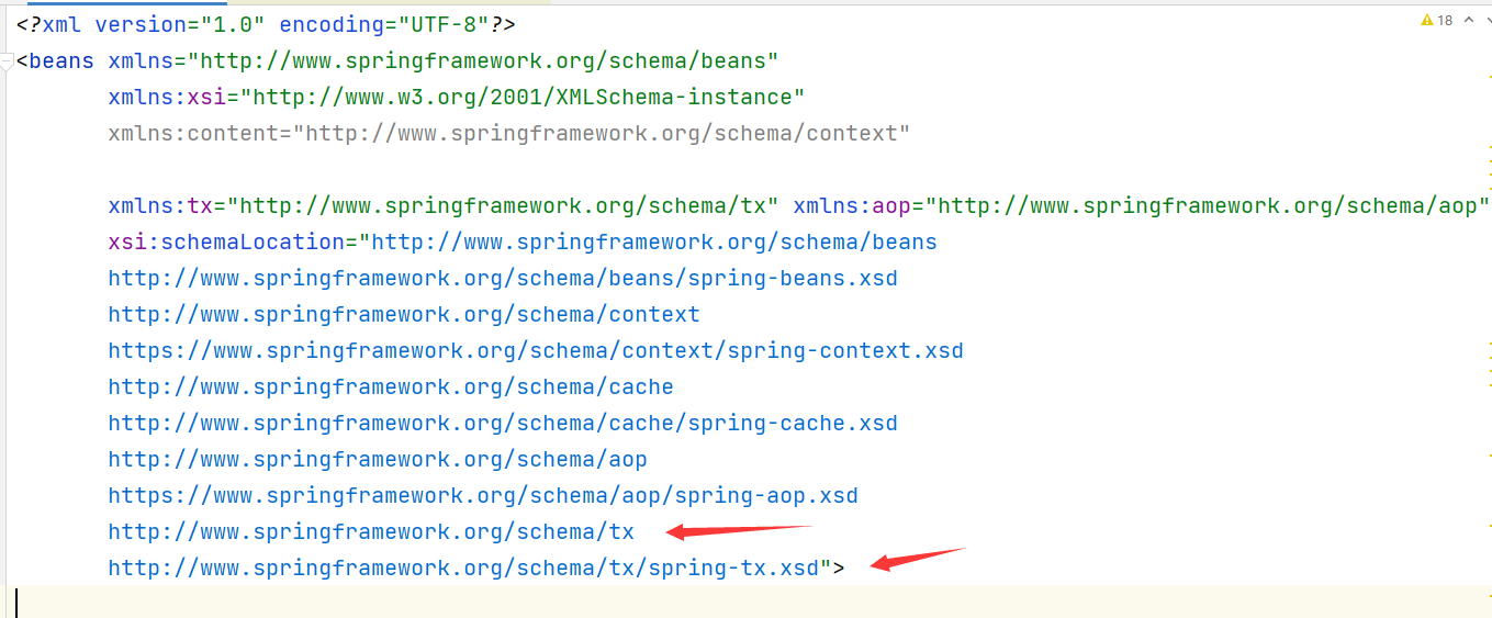 xmlns:tx="http://www.springframework.org/schema/tx" xmlns:aop="http://www.springframework.org/schema/aop"