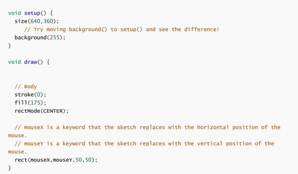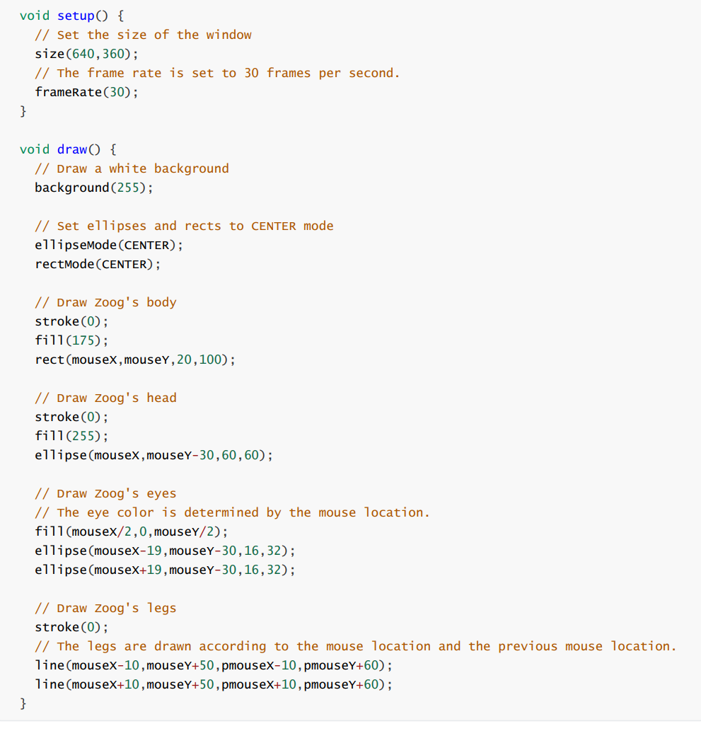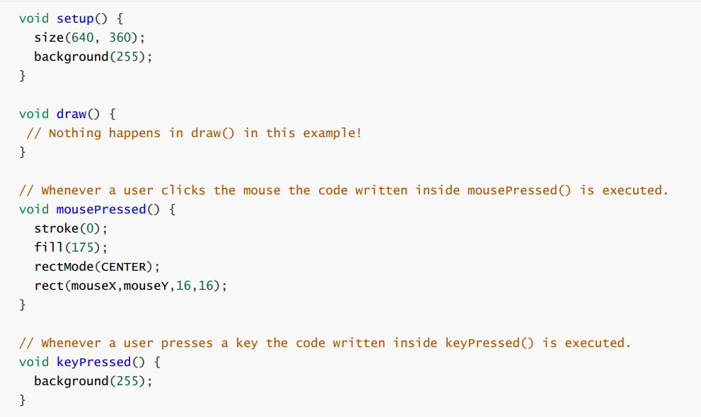 - 在PROCESSING中的代码基本分为三类:函数调用、赋值操作、结构控制。