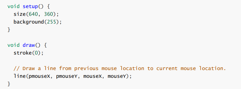- processing是有参考文档的,网址为:processing.org。里面会有各种函数的参考信息,注意查阅。