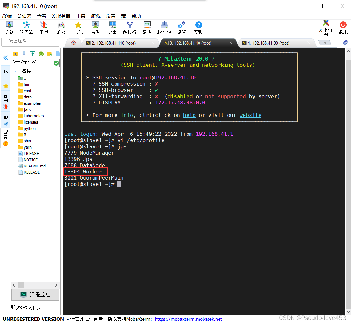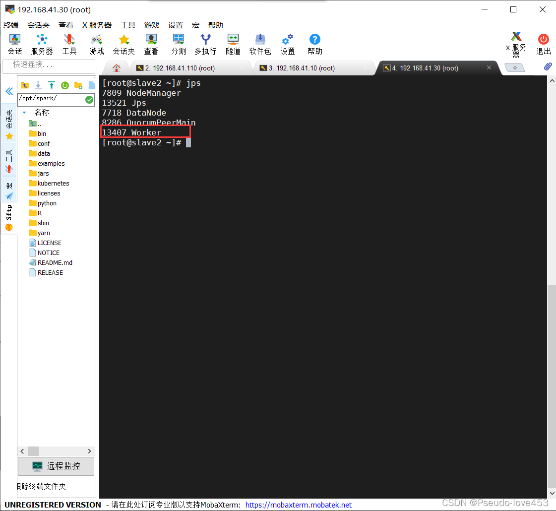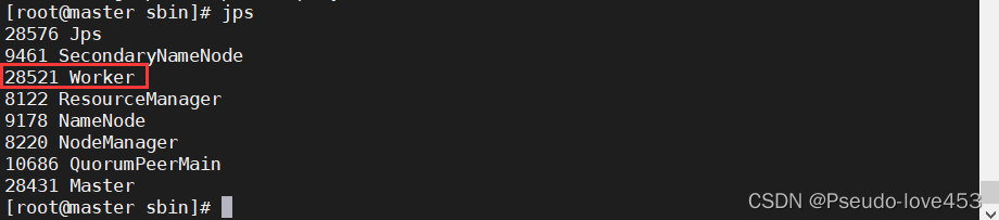 3.在slave1和slave2节点上通过jps命令都能看到worker进程: