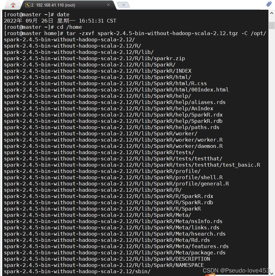 tar -zxvf spark-2.4.5-bin-without-hadoop-scala-2.12.tgz -C /opt/