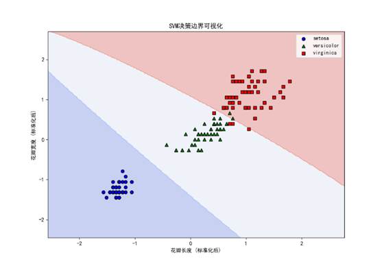 为了更直观地理解 SVM 的分类原理,我们可视化其决策边界: