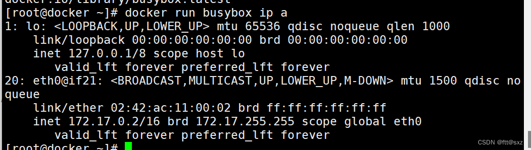 [root@docker ~]# docker run busybox ip a