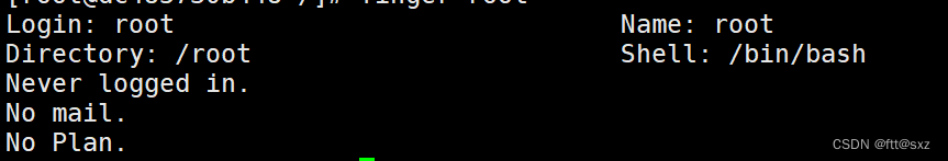 [root@dc485730b448 /]# finger root