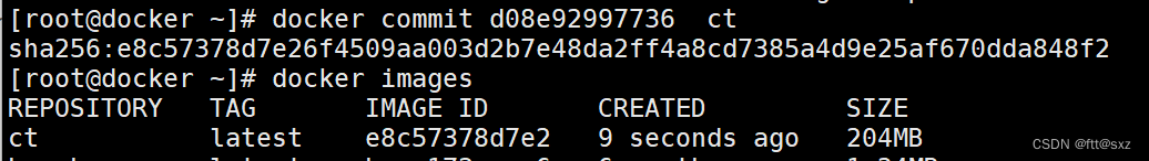 [root@docker ~]# docker commit d08e92997736 ct