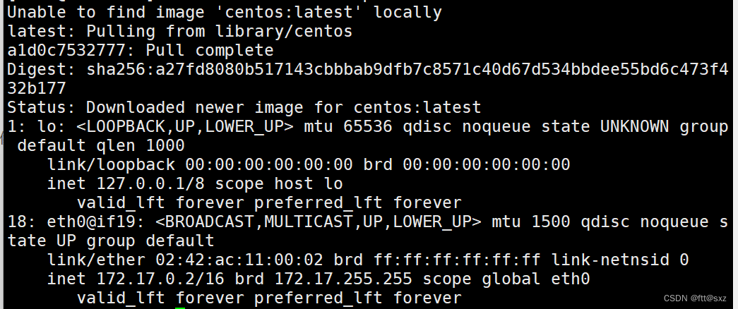 [root@docker ~]# docker run centos ip a