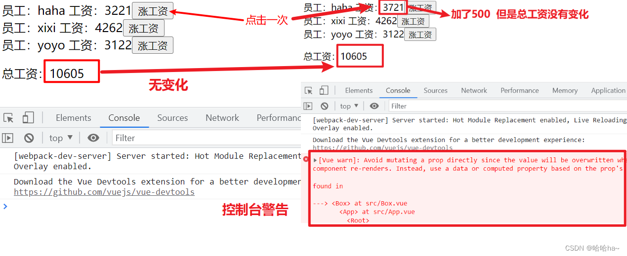 <button @click="change">涨工资</button>
