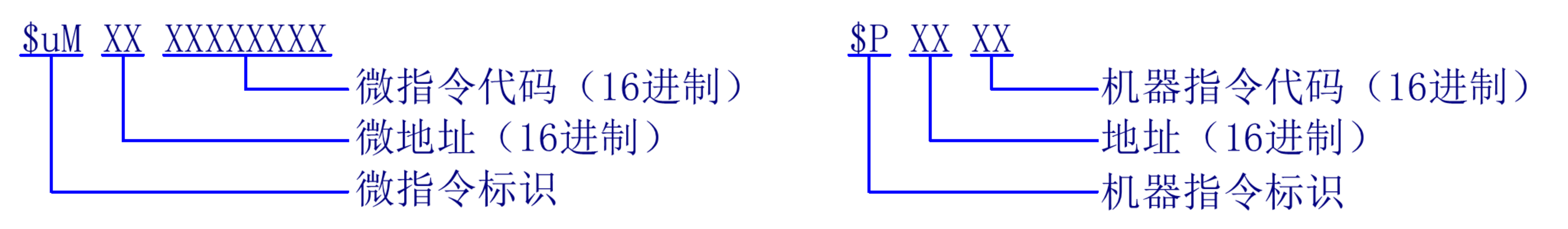 星研集成环境软件要求微程序、机器程序文件的扩展名为PuM,微程序和机器程序的格式如下: