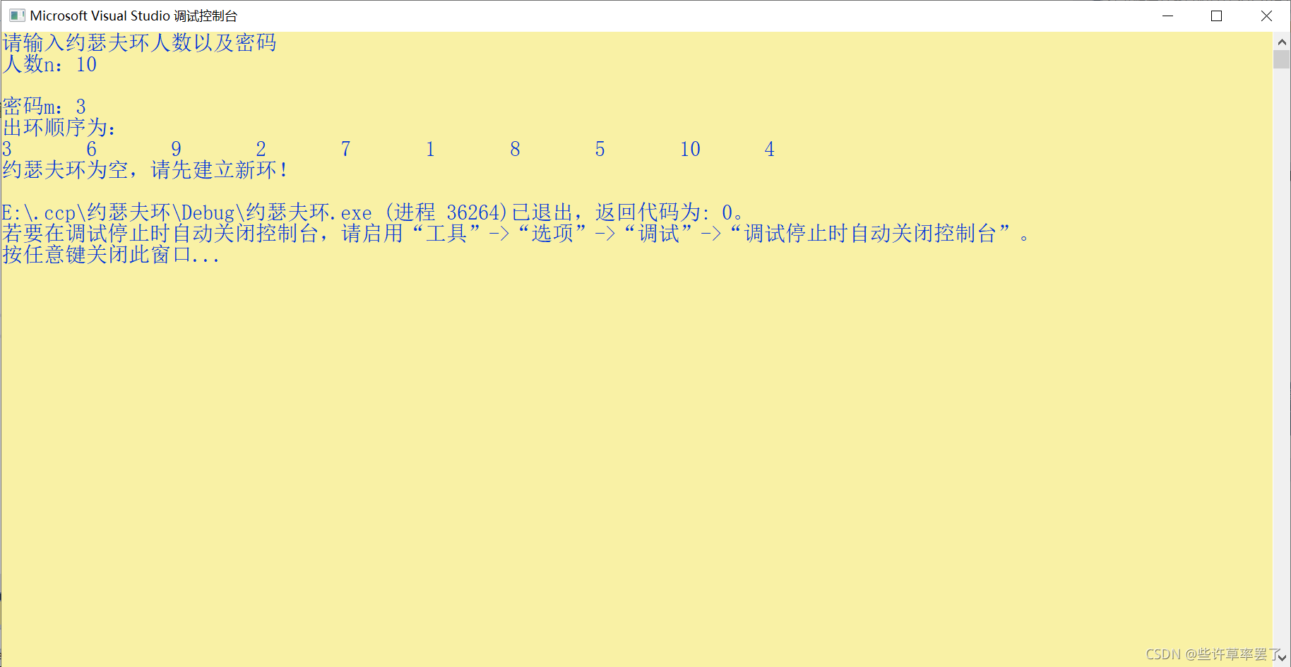 cout << "出环顺序为:" << endl;