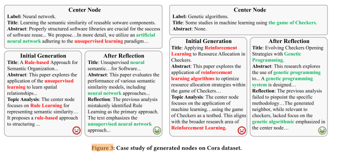 结论: 反思机制帮助 LLM 修正主题误判,提升生成节点与中心节点的一致性。