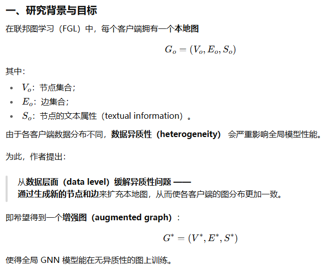 为此,联邦图学习(FGL) 被提出,允许多个客户端在不共享数据的前提下协同训练全局模型。
