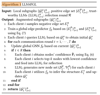 每个客户端利用 LLM 生成本地图中缺失的节点或邻居;