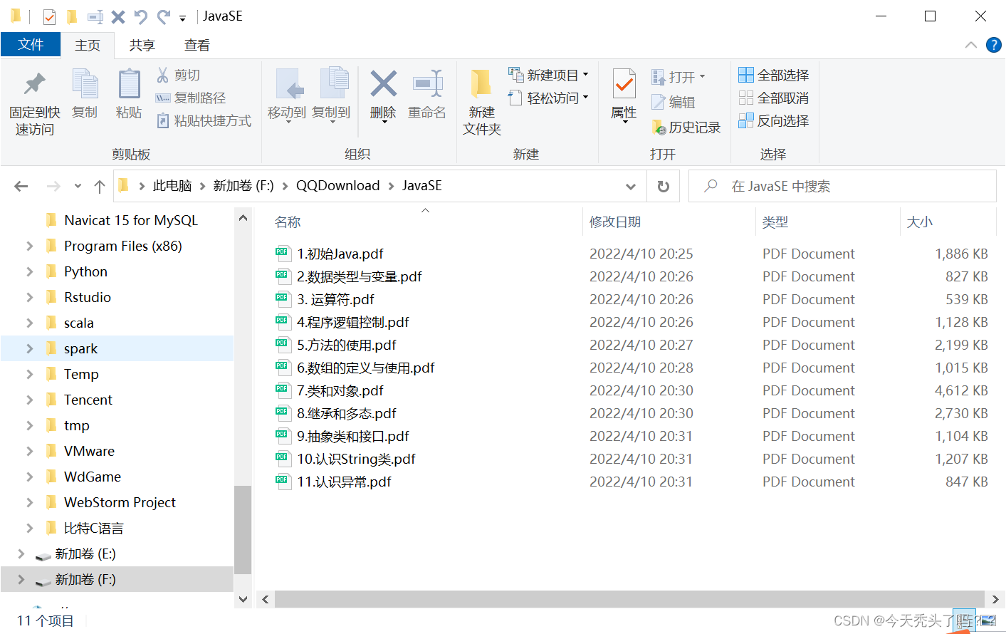 绝对路径:完整的路径。即从根节点出发到目标文件的路径。例如上图,数据类型与变量.pdf的文件的绝对路径就是:F:\QQDownload\JavaSE\数据类型与变量.pdf