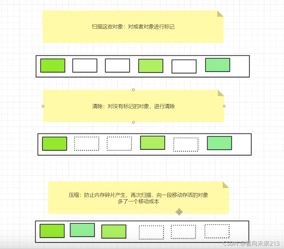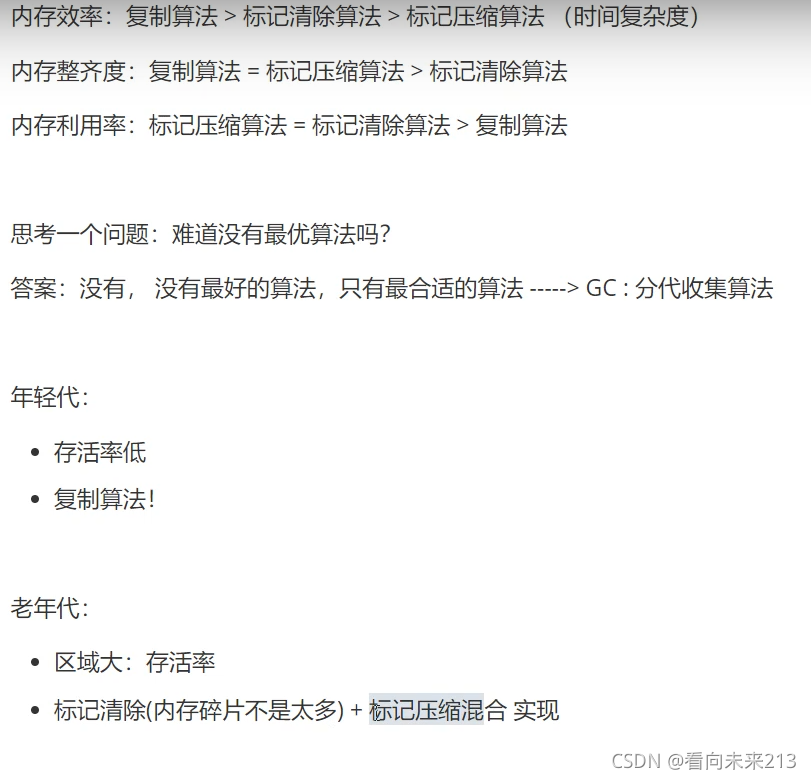 ●坏处:浪费了内存空间~ :多了一半空间永远是空to。假设对象100%存活(极端情况) 复制算法最佳使用场景:对象存活度较低的时候;新生区~