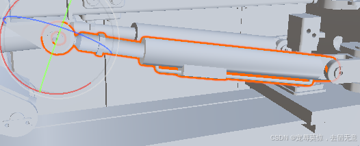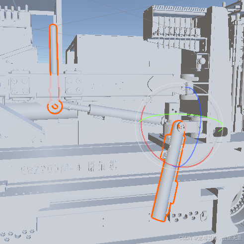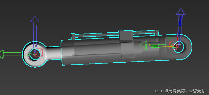首先有这样的一对液压杆,必须在3dmax当中把模型分离出来,并且轴设置为模型的旋转点如图。