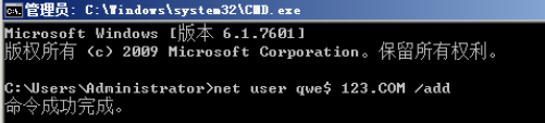 创建命令: net user qwe$ 123.COM /add