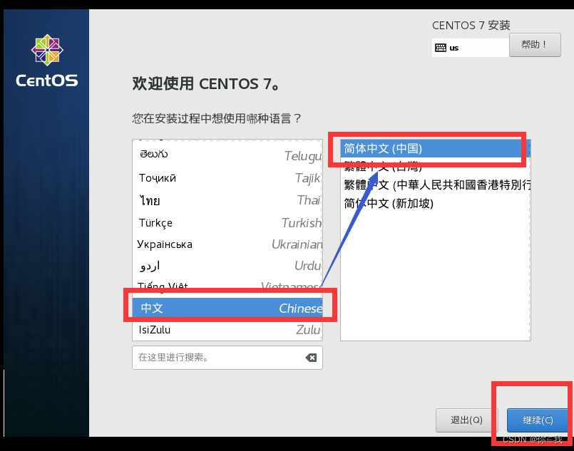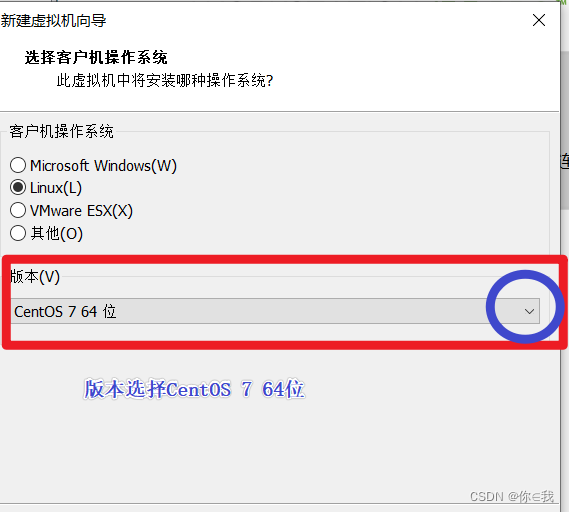 5.版本选择“CentOS 7 64位”(点击向下箭头选择CentOS 7 64位)