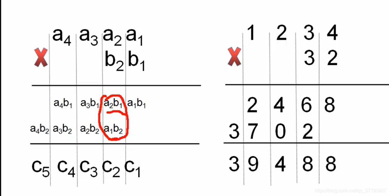 看对应关系,直接上代码:(因为对应相加 又因为采取二重循环,所有c下标对应关系为:i+j-1(i=j=1开始)-------<>