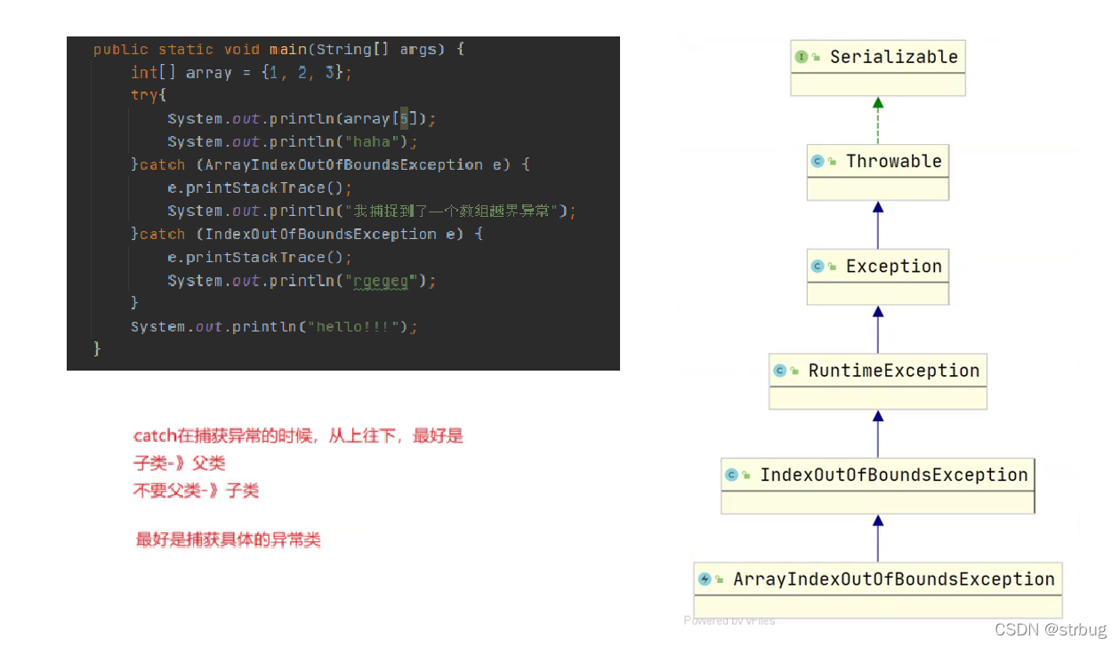 - 自定义异常通常会继承自 Exception 或者 RuntimeException