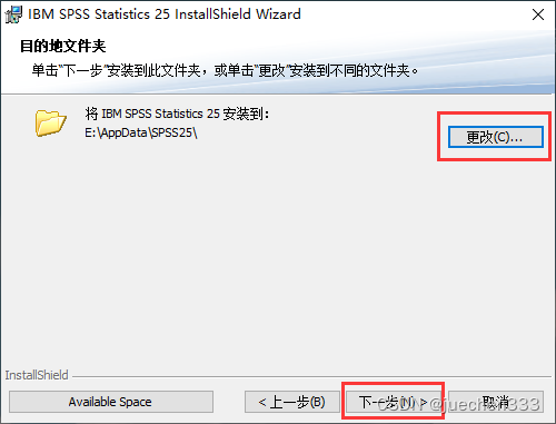 9.点击 更改,(尽量不要安装在系统盘上C盘,拒绝做C盘战士),这里我选择安装在E盘上,点击 下一步。