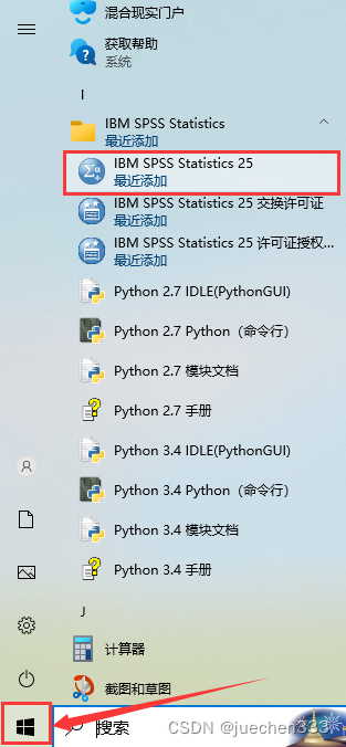 21.点击左下角 Windows 标志,鼠标左键按住 IBM SPSS Statistics 25拖到桌面上。