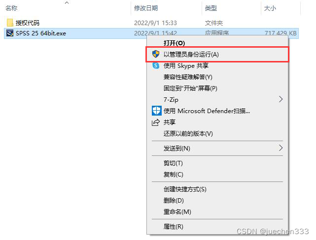 2.右键 SPSS 25 64bit.exe,选择以管理员身份运行。
