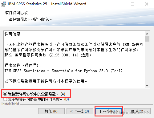 5.选择 我接受许可协议中的全部条款,点击 下一步。