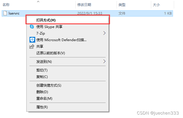 15.打开授权代码文件夹,选中 lservrc 文件,右键,以 记事本 的形式打开。