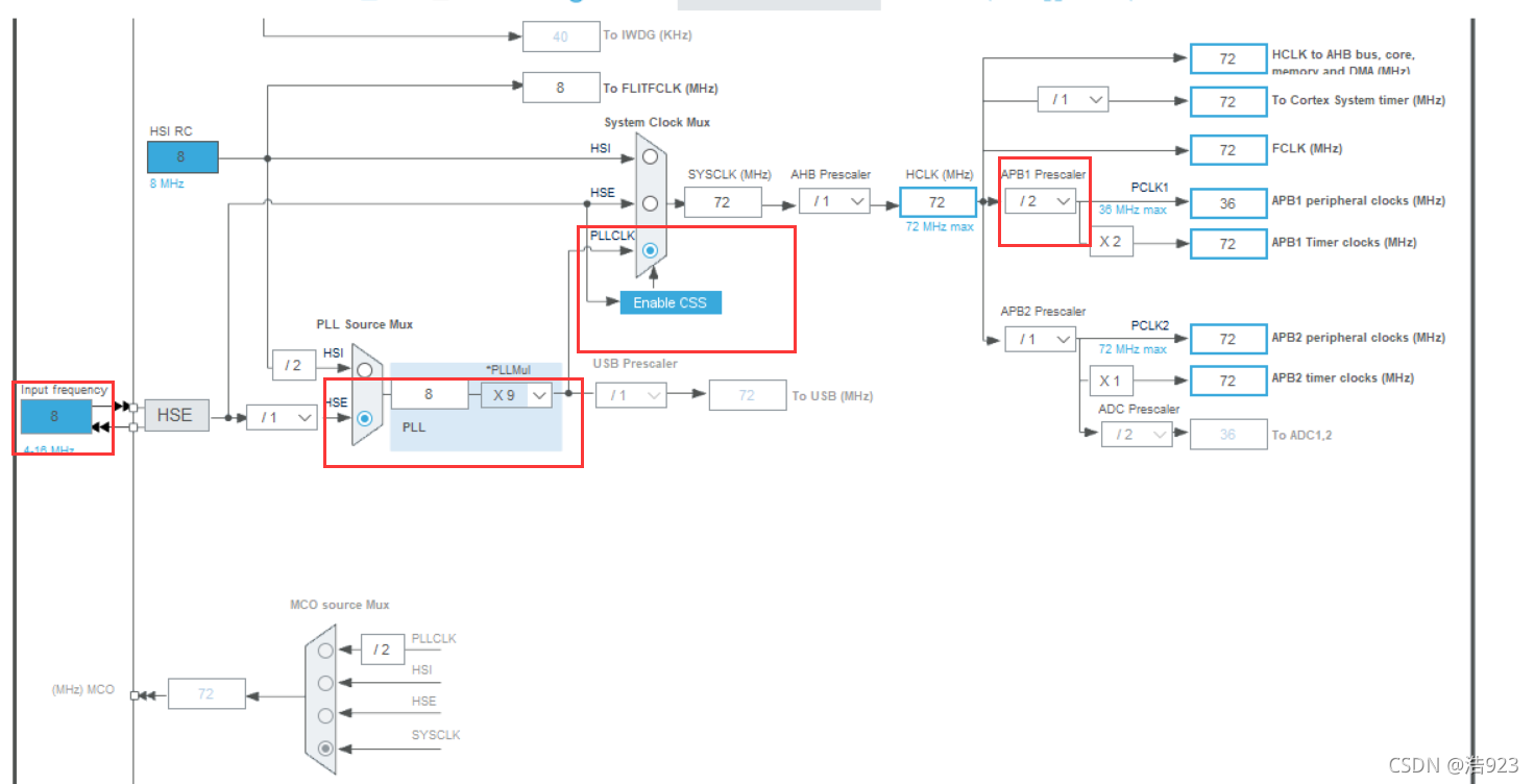 1选择外部时钟HSE 8MHz