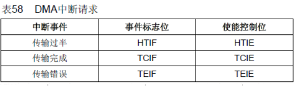每个DMA通道都可以在DMA传输过半、传输完成和传输错误时产生中断。为应用的灵活性考虑,通过设置寄存器的不同位来打开这些中断。