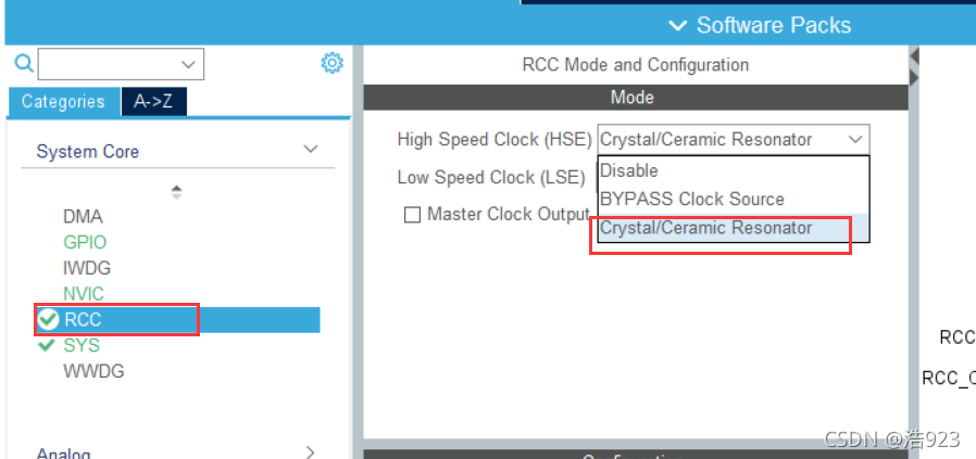设置RCC:HSE设置为`Crystal/....`