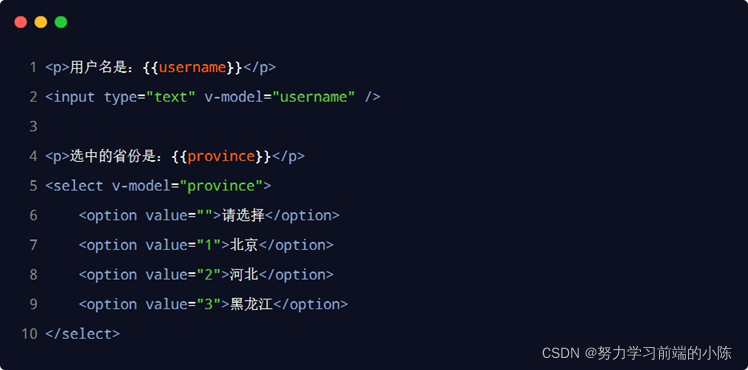 <!-- 使用 v-model 实现双向数据绑定 -->