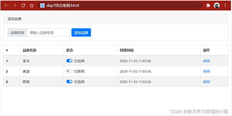 ④ 实现删除品牌的功能