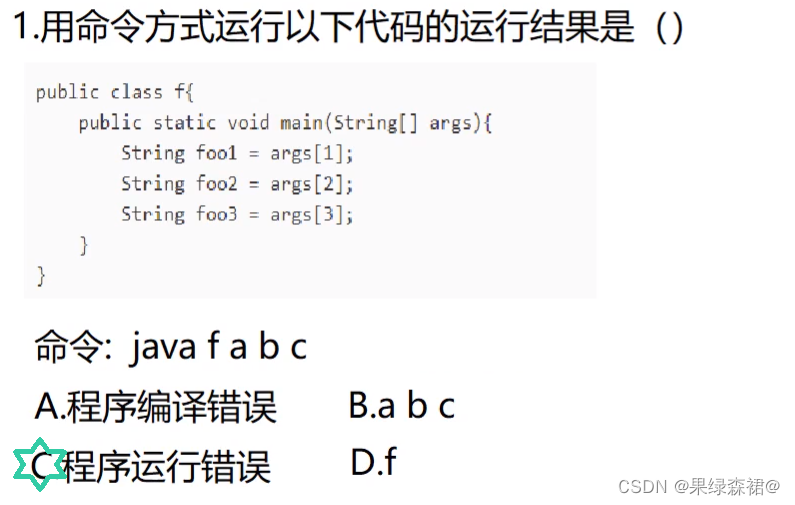 命令:java f a b c 相当于只给args传递了3个参数,而args索引是从0开始的,没有args[3],会导致下标越界